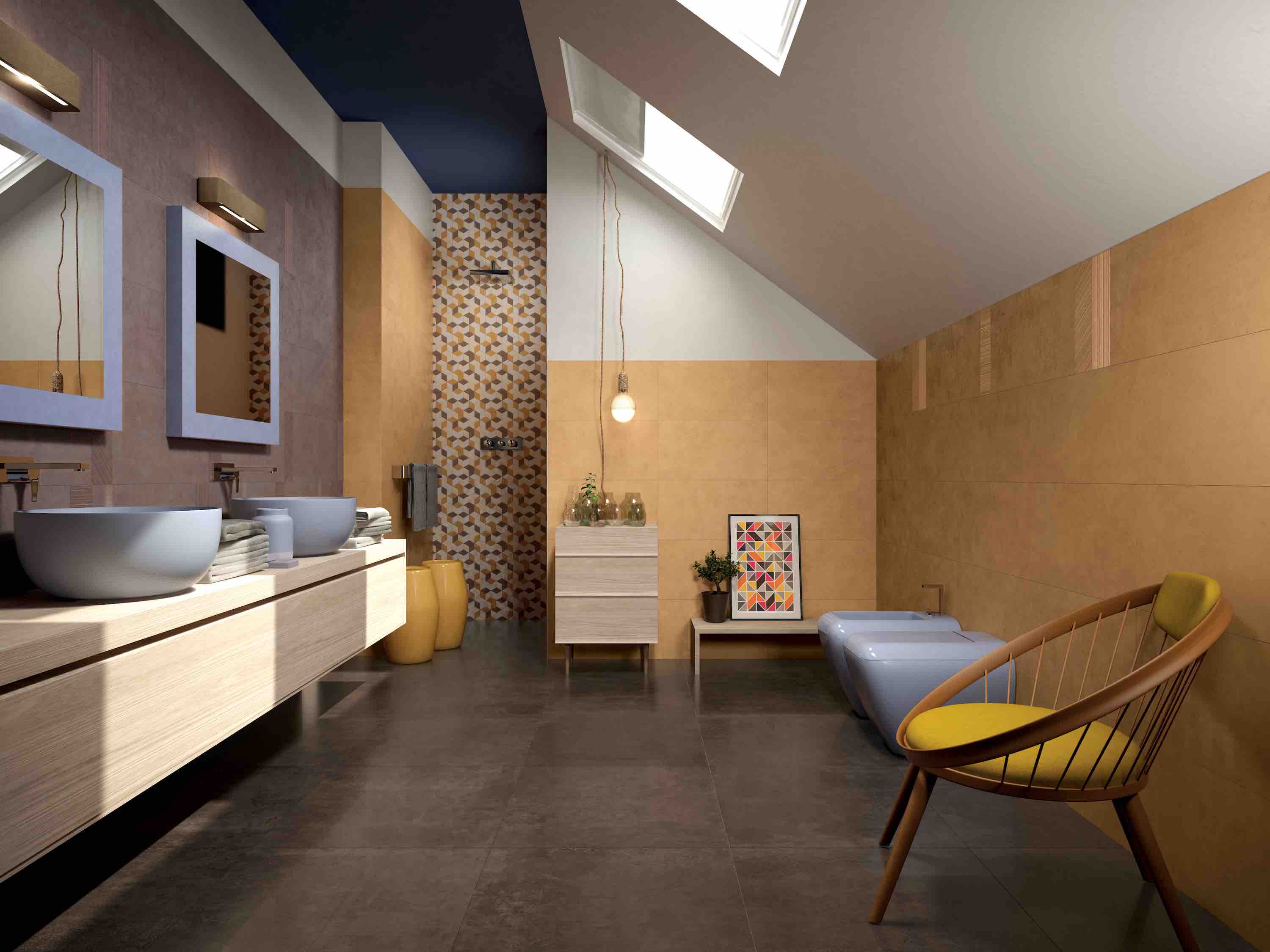 A captivating surface characterised by precious iridescence with metallic effect that evokes the Shades of cement and an urban charm able to integrated with different architectural styles.contemporary material Creation is a ceramic project that recalls the urban mood of cement and is made up of walls with delicate shades and floors with more marked hues. It is perfect for metropolitan spaces characterised by a unique contamination of styles.
